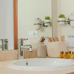 Casa Marla Mit 3 Schlafzimmern Und 2 Badezimmern 아파트에 휴게실, 휴게실, 커피 및 티 메이커가 마련된 객실이 있습니다. 욕실 시설로는 비데, 비데, 욕조 있습니다.